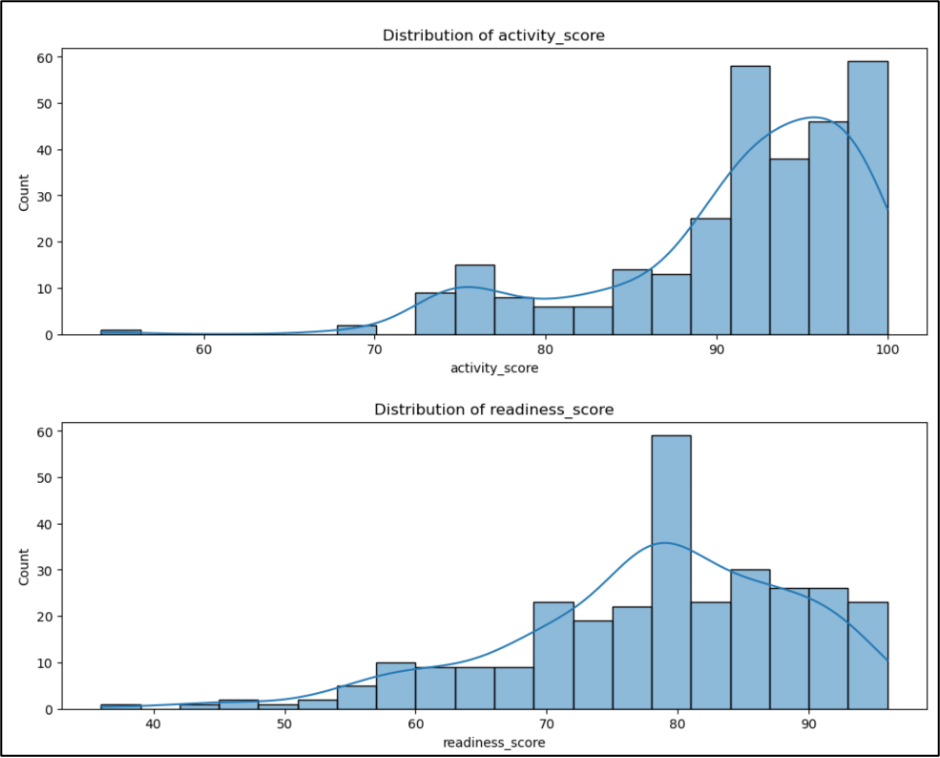 We get a predicted Readiness Score using three KPIs — Average Resting Heart Rate, Sleep Score, and Activity Score.